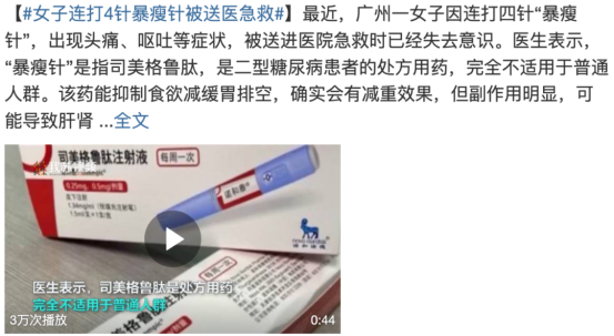 但在现实里,因为随便网购便能轻易买到“减肥针”,大部分人根本不在意自己适不适合,更有甚者,连剂量看都不看就直接往体内打,引发的后果可想而知。