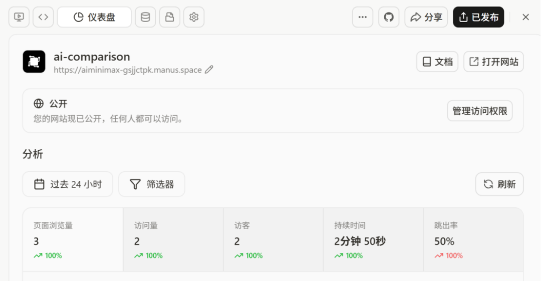 初体验后我的感觉:Manus这样的AI智能体产品,调用的模型主要是海外AI模型,调用的相关工具也都是海外的产品,且发布的任务结果,可以以生成网页来展现,这完全就是面向海外市场习惯打造的AI智能体平台。