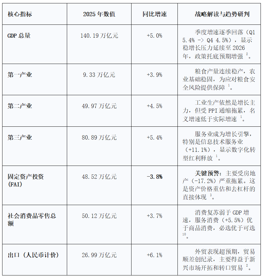 站在2026年的开端,回望刚刚收官的“十四五”最后一年,中国经济展现出一种极具张力与复杂性的宏观图景。国家统计局发布的《2025年全年国民经济运行情况》不仅仅是一份成绩单,更是一份宣告旧模式终结与新秩序建立的宣言书。GDP总量突破140万亿元大关,实现5.0%的增长目标,但在这一总量达标的表象之下,经济运行的底层逻辑正在发生剧烈而深刻的断裂与重构。