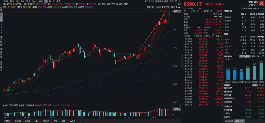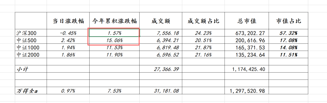 2、沪深300指数和中证500指数存在巨大涨幅差异;