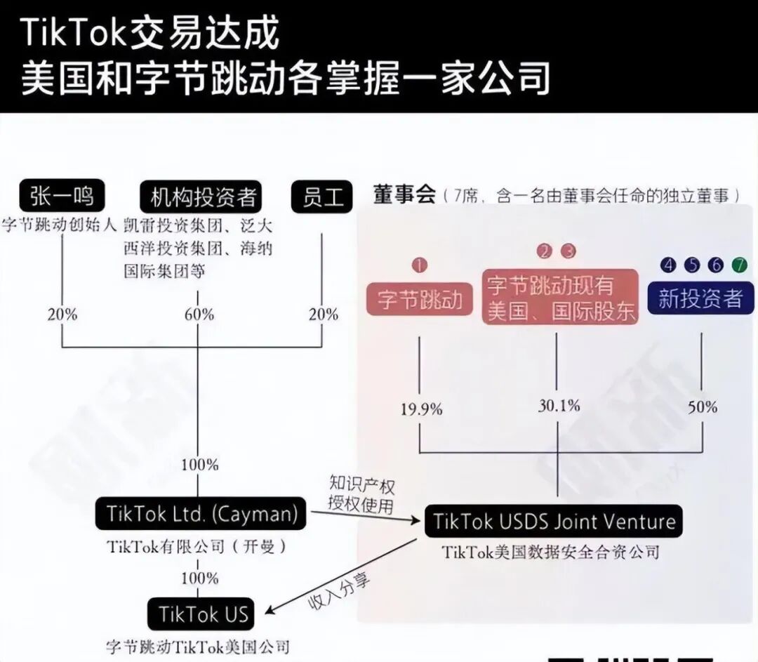 在这个新公司字节跳动占股19.9%,字节跳动原本的一些国际股东占比30.1%,而特朗普政府原本看好的甲骨文、银湖资本等美国投资方占股45%。