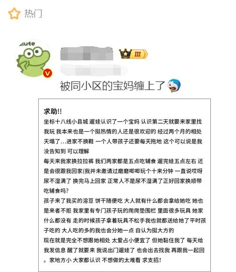 题主生活在十八线小县城,遛娃时认识了同小区的一位宝妈。