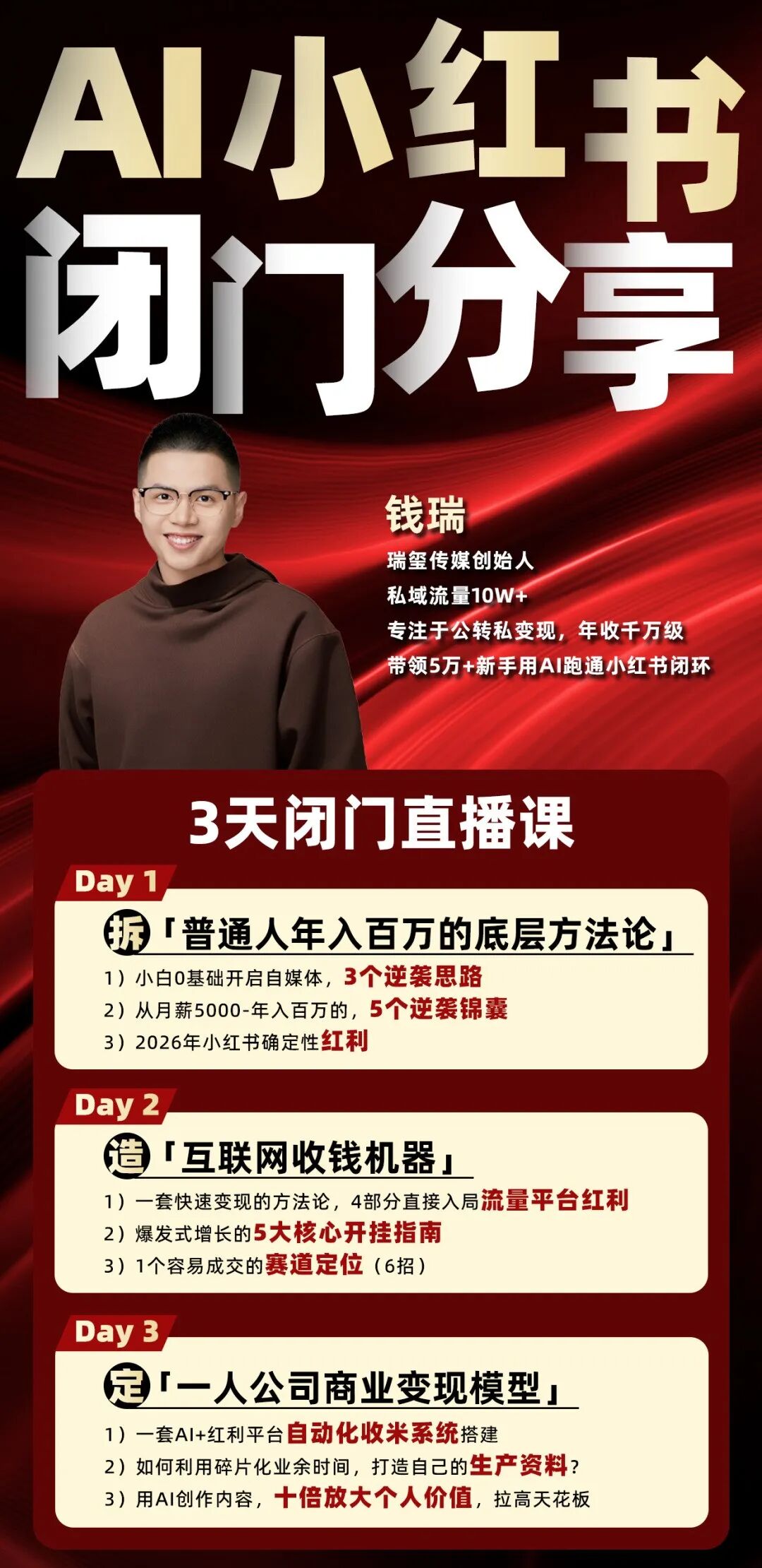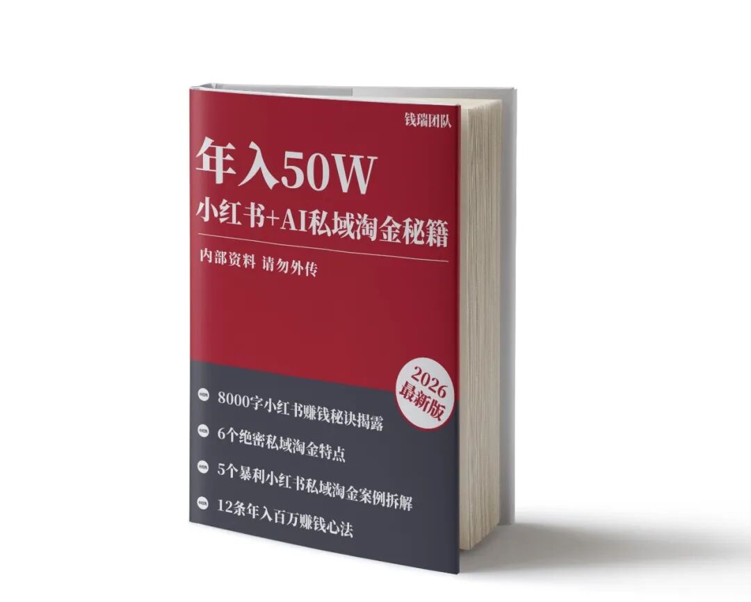为了方便大家了解项目怎么变现,钱瑞整理了一份《年入50w,小红书AI淘金秘籍》电子书,信息密度非常大。