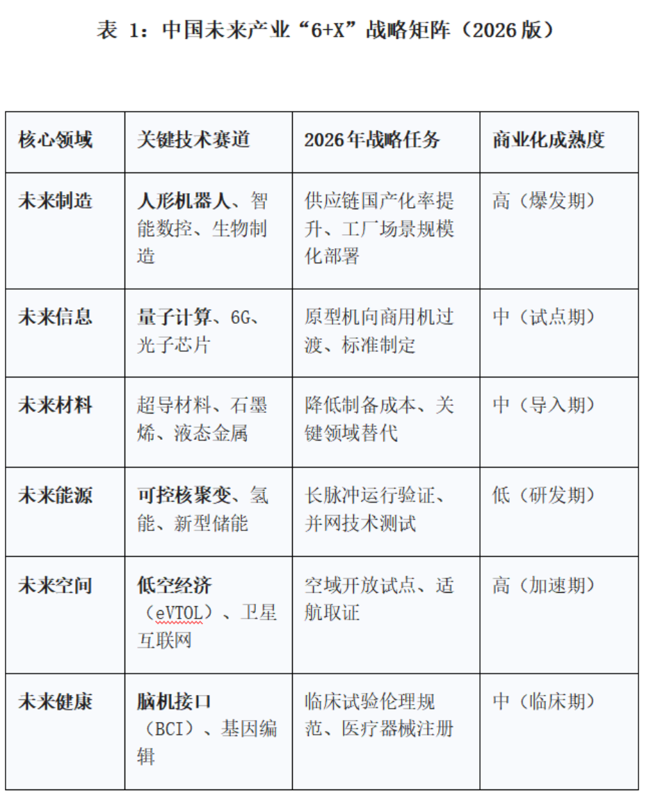 虽然政治局学习并未列出详尽的产业清单,但结合工信部此前发布的《关于推动未来产业创新发展的实施意见》以及“十五五”规划的前期研究,中国未来产业的版图已清晰呈现为“6+X”矩阵。