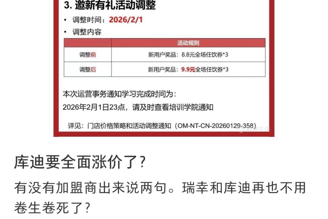如今的库迪,门店已突破1.5万家,又何尝不是走到了瑞幸彼时的发展阶段,并做出了同样的决定,主动结束这场“价格没有最低,只有更低”的畸形内卷。