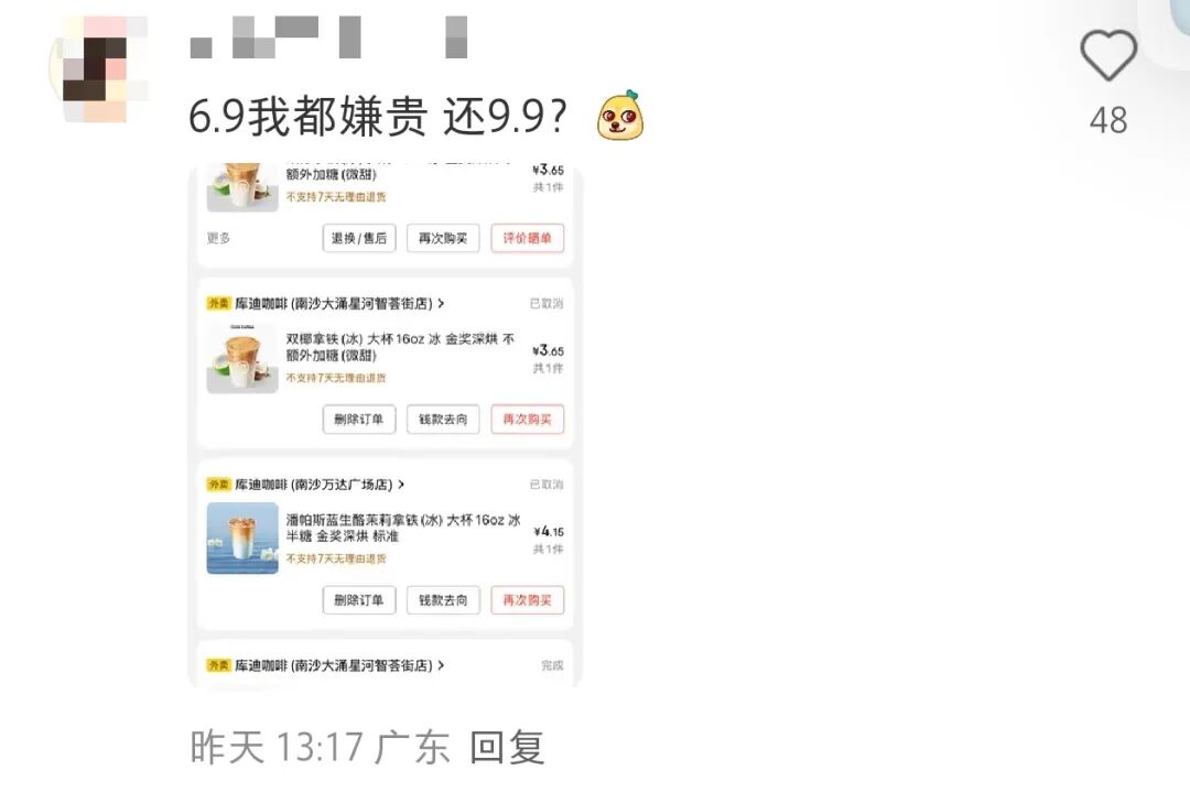 库迪将取消全场9.9元,但外卖平台补贴活动仍继续参与