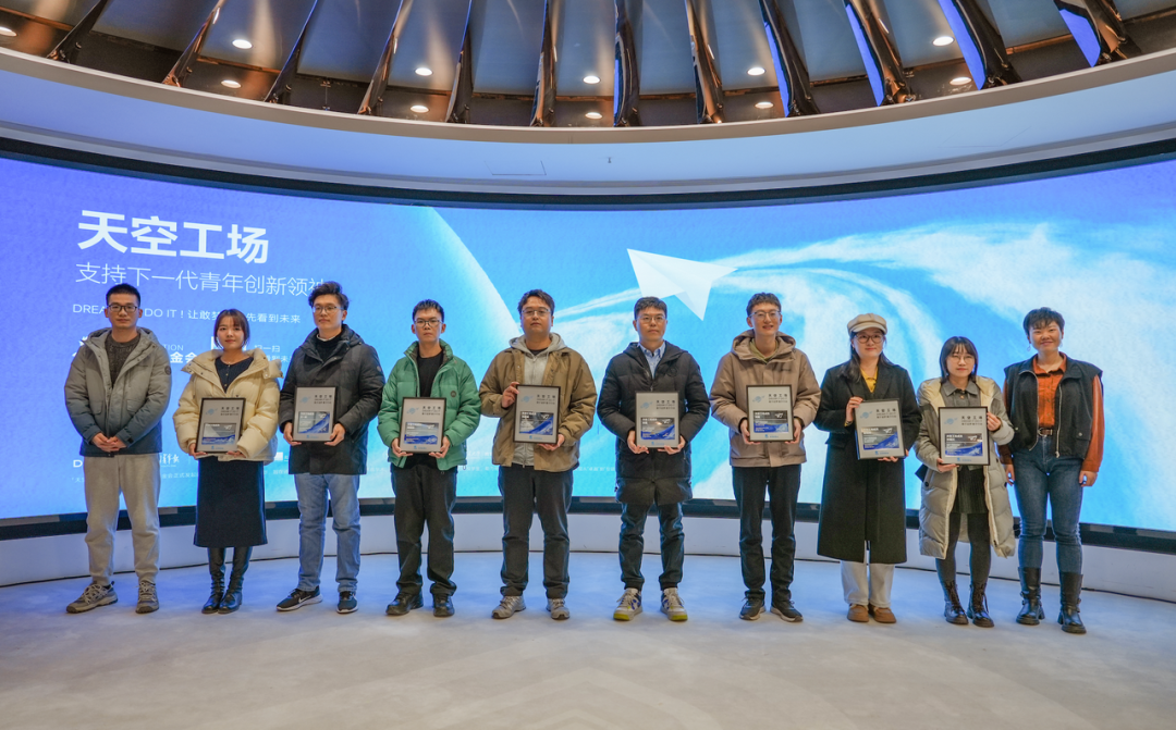首批“天空工场”成员接受证书并进行主题分享,讲述他们对未来的畅想