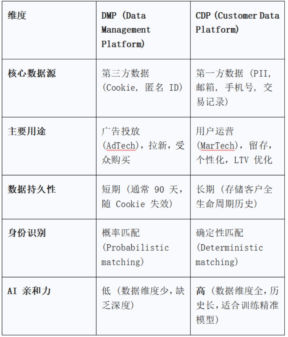 许多高管容易混淆CDP 和 DMP(数据管理平台),但在 AI 时代,二者区别至关重要 :