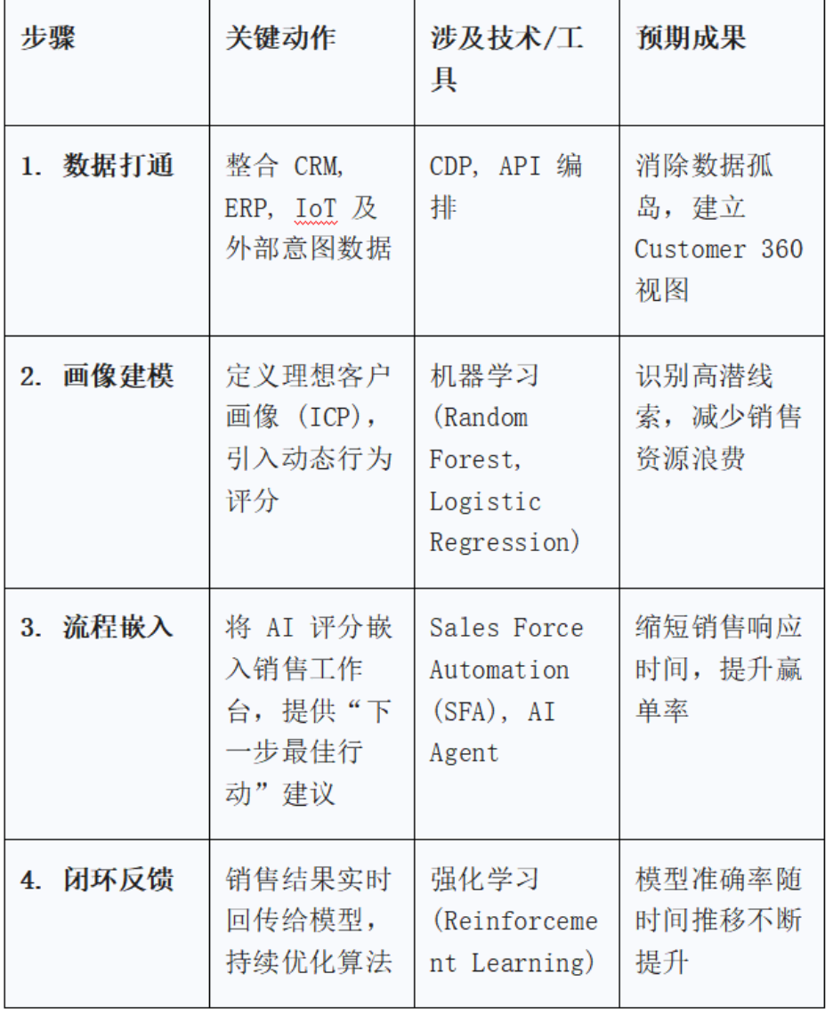 对于B2B 企业的 CGO,构建智能销售闭环需要遵循以下步骤: