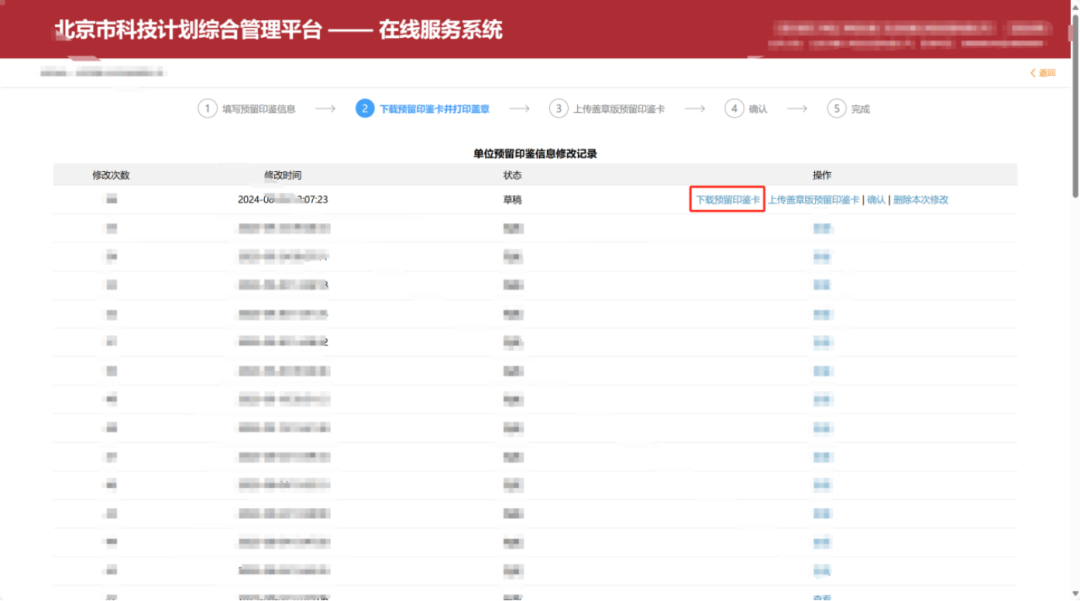 5、下载预留印鉴卡并加盖公章后,再次上传。即完成注册