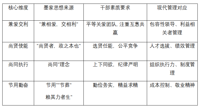 "士虽有学,而行为本焉",企业真正的竞争力最终体现在干部的行为素养上。墨家干部素质模型的深入应用,将帮助企业培养更多具有务实精神、协作意识和创新能力的优秀管理人才。