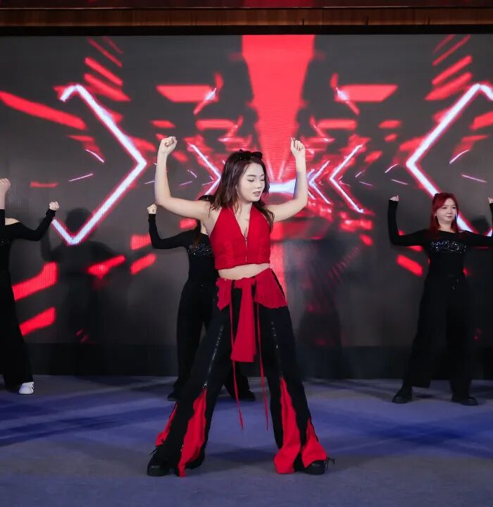 杭州分部以“炽热港湾,这下要红了!”为主题,选在了Livehouse艺术空间举办,以中国红为主视觉,全体员工身着红色晚礼服打造沉浸式红韵盛典。