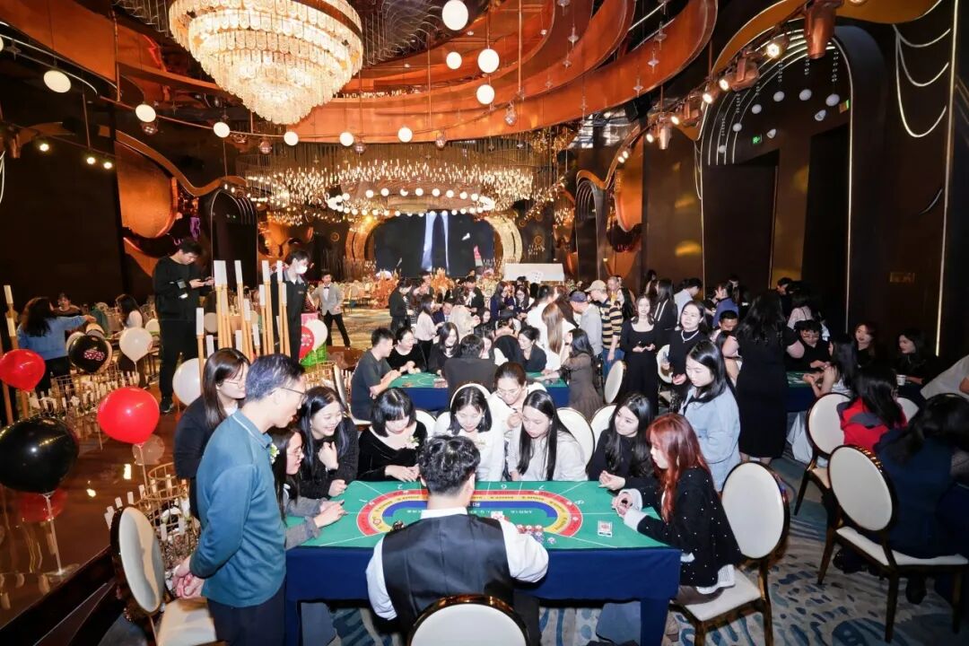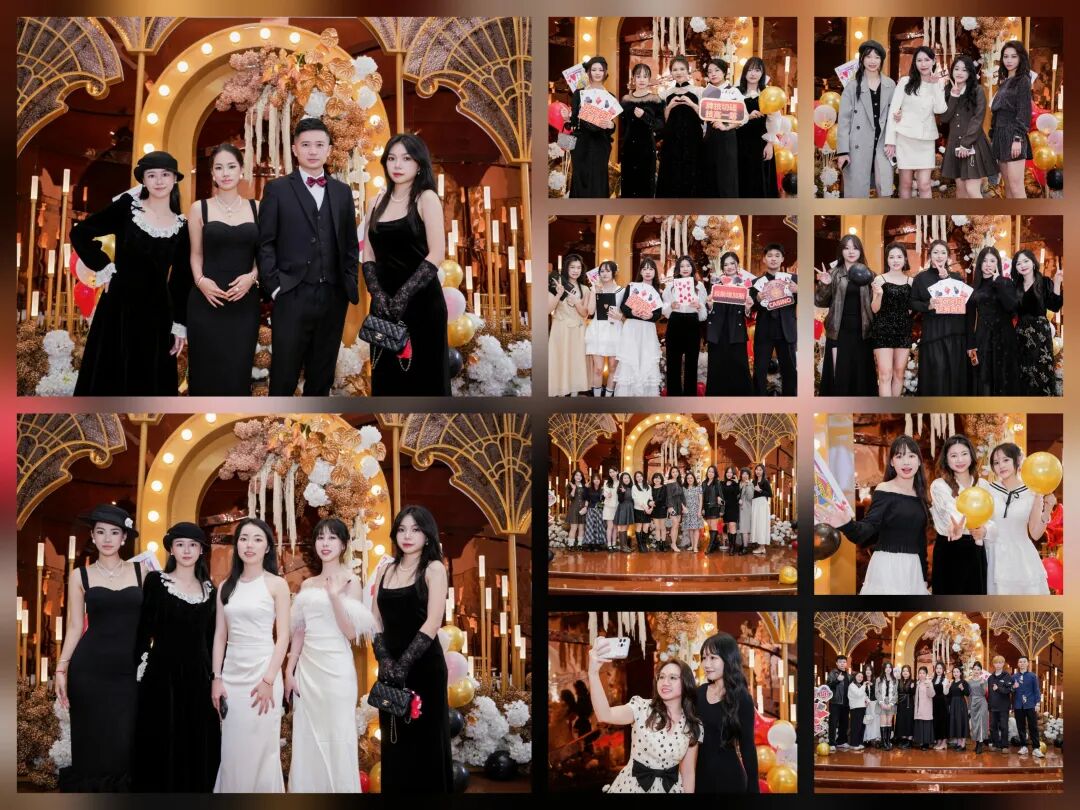 广州分部以 “策马拓疆 ‘码’上创富拉斯维加斯之夜” 为主题,将赌场沉浸式体验搬进年会现场,全体家人身着黑金盖茨比风盛装赴宴,氛围感拉满。