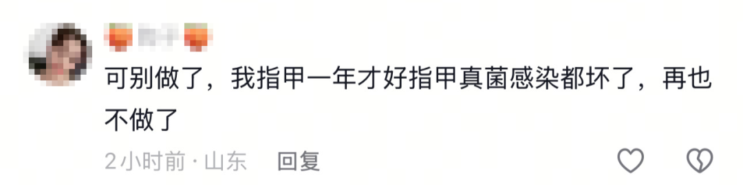 不只是她,在这些视频的底下,很多网友晒出了自己做完美甲后的“惨状”。