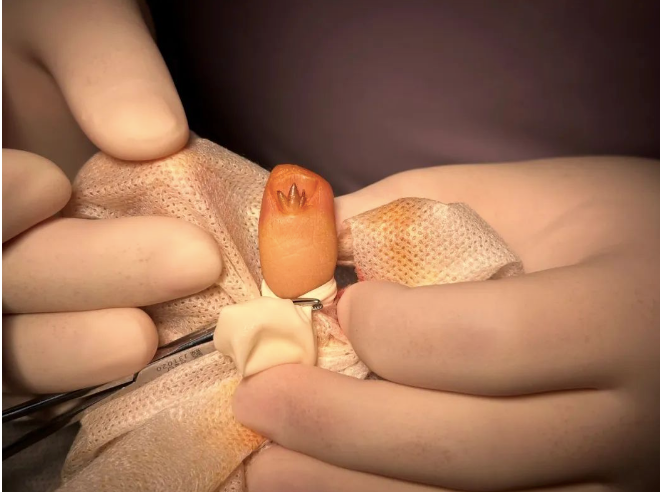 医生检查后发现,姗姗的指甲上长出的“玛莎拉蒂”其实是一种增生的肉芽组织。