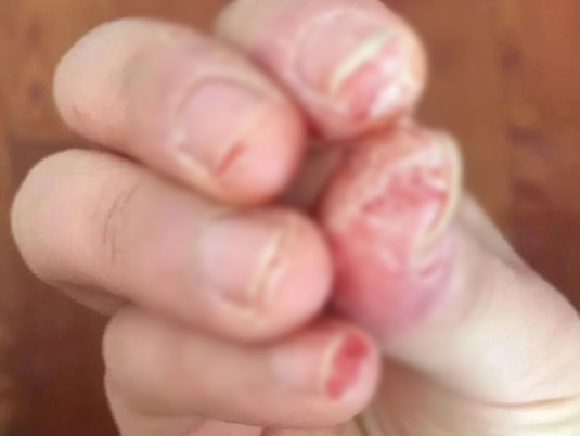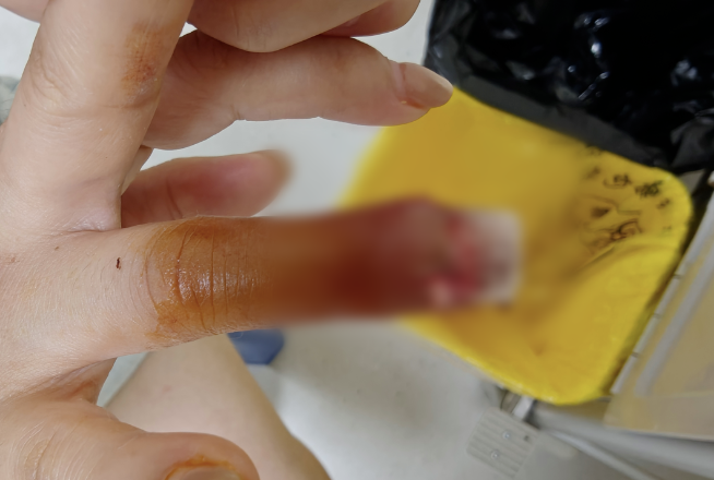 她头一次去做美甲,没想到做了一半,手指头就发红发肿,还伴随着脱皮的症状,十根手指肿得像个小棒槌。