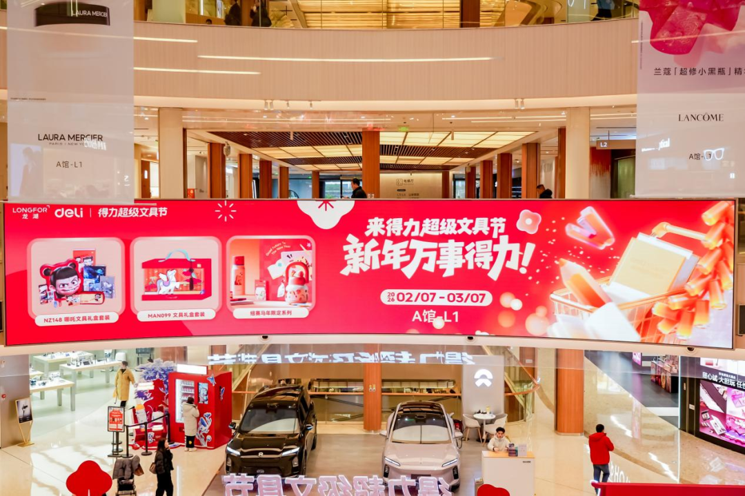 同步在6 座城市开启活动,北京、天津、苏州三城入驻当地顶流商圈,得力上海品牌旗舰店,沈阳、兰州两地的得力城市旗舰店也同步开业,为期一个月的活动,充分融合了春节的喜庆与开学季的活力,1000余款文具文创好物集中亮相,让得力超级文具节真正成为一场兼具仪式感与参与感的全民节日,传递新年启程的美好祝愿。