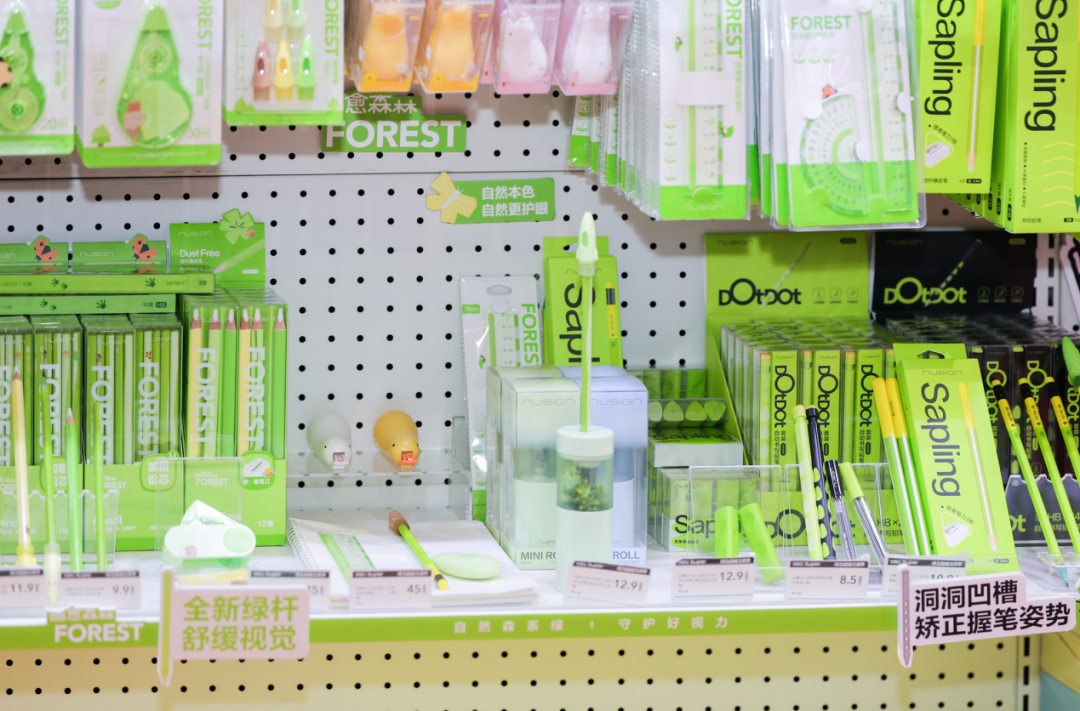 得力旗下的中高端精品文具品牌「纽赛」,同步亮相旗舰店。作为定位“文具与生活的美学纽带”的独立子品牌,纽赛以美学设计为核心,所推出的目愈森林系列、乔古漫联名系列等,备受年轻消费者的喜爱。