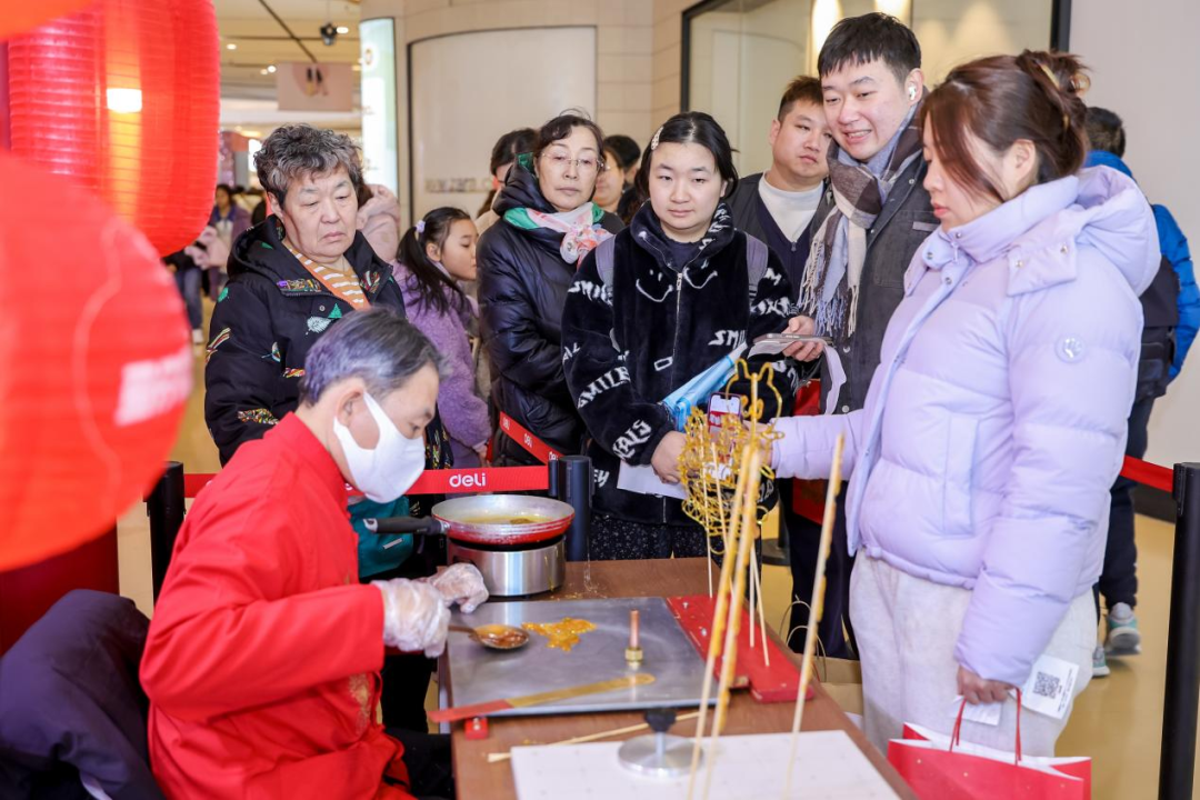 印章祈福、天选之子、好运头条、非遗妙笔糖画、自嘲熊互动合影等多样化项目,让消费者不仅能“买好”,更能“玩好”,全方位感受到浓厚的新年仪式感与满满的趣味,实现了从单一销售向沉浸式体验的跨越。