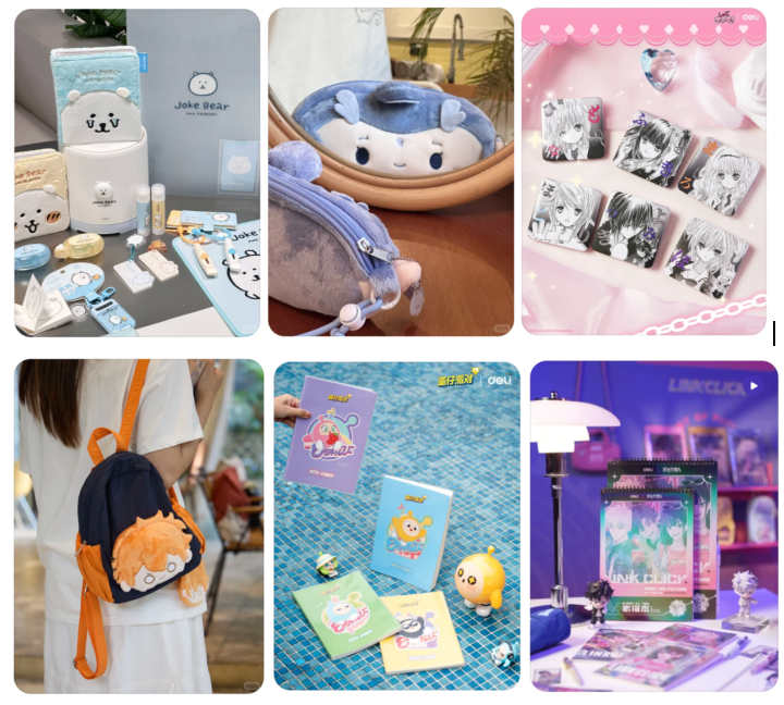 更重要的是,得力将Z世代青睐的“热血、萌系、治愈”等不同IP的精神内核,深度融入产品设计之中,让普通文具升级为兼具实用性、收藏价值、社交属性的文创产品,产品类型也极为丰富。