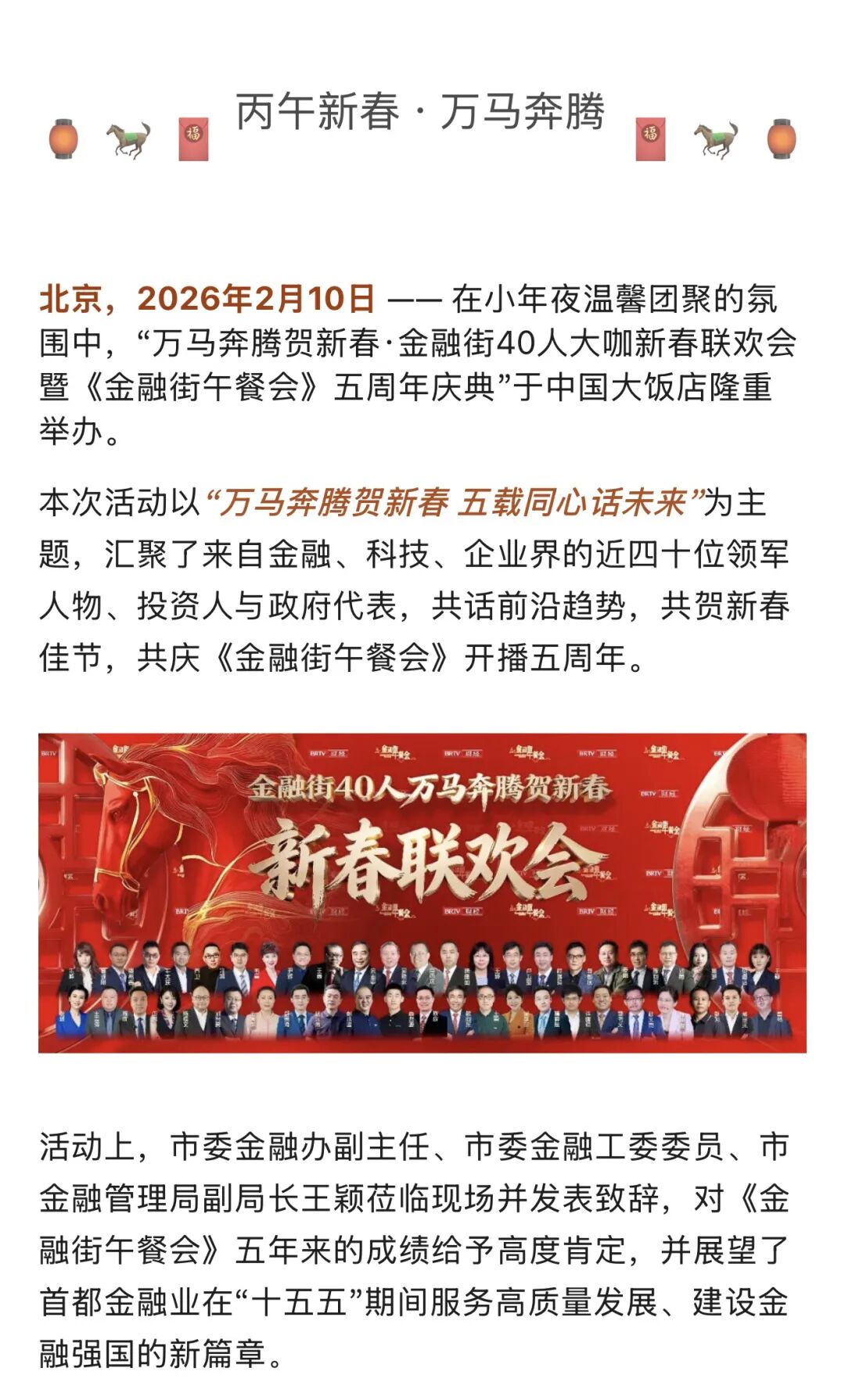 优客工场携手金融街大咖贺新春:《金融街午餐会》五周年,万马奔腾开启丙午新篇章