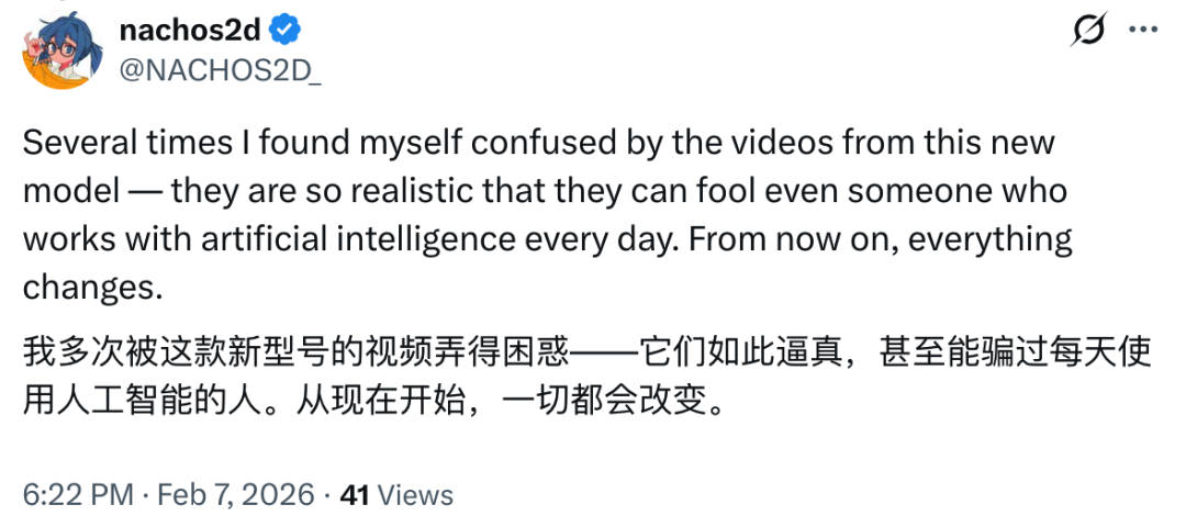 「Seedance 2.0 是我 26 年来最大的震撼」、「我觉得它碾压 Sora2」。