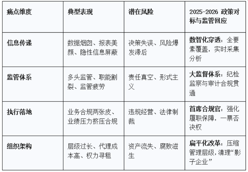 2026年将是穿透式监管全面铺开的关键之年。对于企业管理者而言,唯有正视信息不对称、多头监管、基层合规薄弱等痛点,以刀刃向内的勇气推动组织架构变革(如西门子模式),以开放拥抱的态度引入数智化监管工具(如国家电网模式),方能在做强做优做大国有资本的征途中,筑牢风险防火墙,实现高质量发展的战略目标。