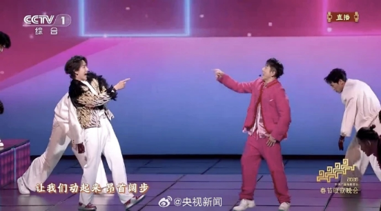 郭富城与王一博的跨代际合作《闪耀动起来》,舞台效果比较年轻化,跟以往的春晚风格也有很大的突破。