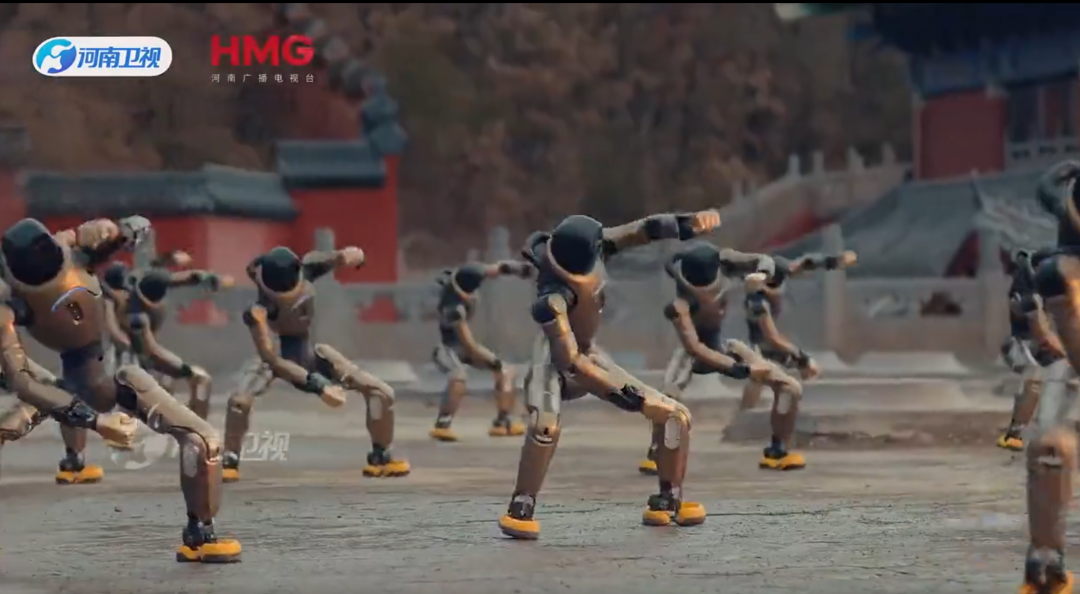 河南卫视春晚,智元机器人带来了《功夫机缘》,机器人扎马步、打醉拳,甚至与少林武僧对打,展现了“机械美学”与“武术哲学”的完美结合。