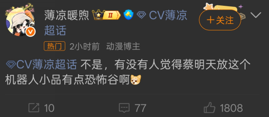 比如小品《奶奶的最爱》,蔡明时隔30年,再续机器人情缘,一排排机器人甚至引发了“恐怖谷效应”,对比多年前蔡明另一档机器人小品,老观众直呼“爷青回”。