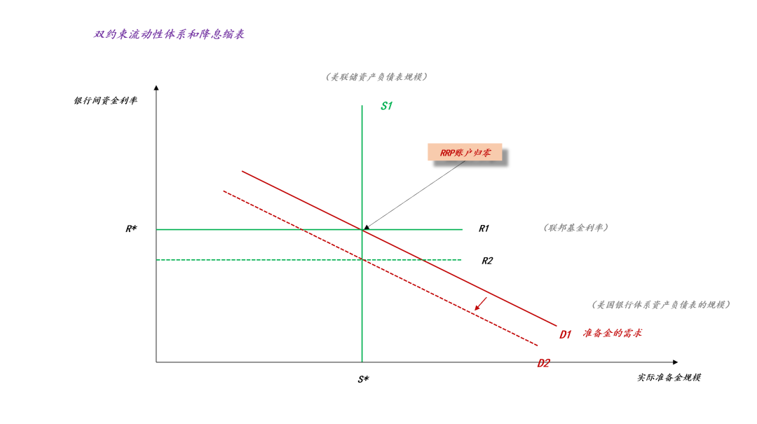 于是,在美联储资产负债表的负债端,S1的一部分体现为准备金S*,S1的另一部分体现为隔夜逆回购RRP*。