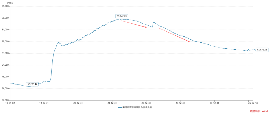 最近半年,很多人开始讨论RRP账户(ps:RRP账户全称为Overnight Reverse Repurchase Account(隔夜逆回购账户)),并把该账户余额视为一个重要的流动性指标。如上图所示,该账户的余额在2025年Q4回落到200亿美元关口上下,与此同时,我们还观察到两个重要流动性现象:如上图所示,比特币价格于2025年10月见顶回落,截至目前,已经接近腰斩。如上图所示,纳斯达克指数于2025年10月10日快速下跌了3.56%,之后进入了宽幅震荡区间,截止目前,纳斯达克指数的点位跟2025年三季度末基本持平。不难发现,RRP账户余额枯竭和美元流动性走弱之间,存在一种十分奇妙的相关性。那么,这种相关性的根源到底来自于哪里呢??我们将在这篇文章中深入探讨其背后的流动性机制。一般来说,货币当局对银行间流动性的控制,存在两个天然的维度:数量和价格。其中,数量型约束的代表是准备金的规模,价格型约束的代表是银行间资金利率。