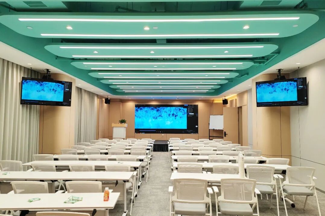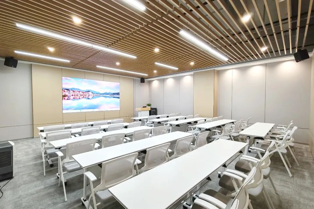 我们有大小不一的会议室,4-6人小会议室、10+人大会议室、80人培训室路演厅等全覆盖,不管你是和客户一对一沟通,还是和核心伙伴开项目会,甚至是做小型路演,都能找到合适的场地。
