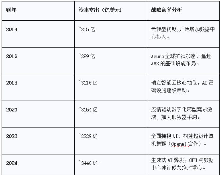 表1:微软云转型期间资本支出(Capital Expenditure)趋势分析