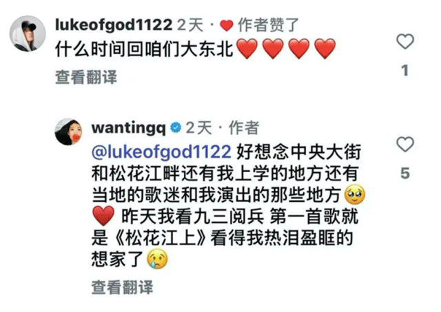 在社交平台多次表示想念家乡,说自己看阅兵激动落泪。