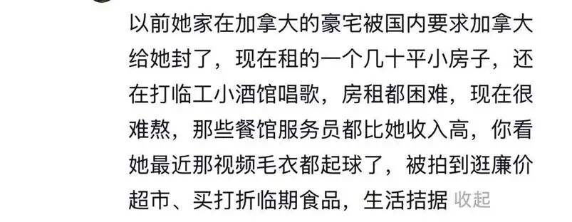 还有人说,她的豪宅被冻结了,只能搬到几十平的小公寓。