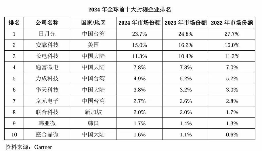 根据Gartner统计,2024年度,盛合晶微是全球第十大、境内第四大封测企业,且2022年至2024年营业收入复合增长率达69.77%,在全球前十大企业中位居第一。