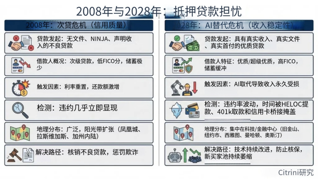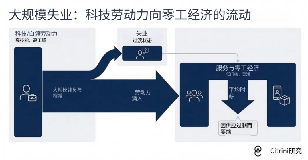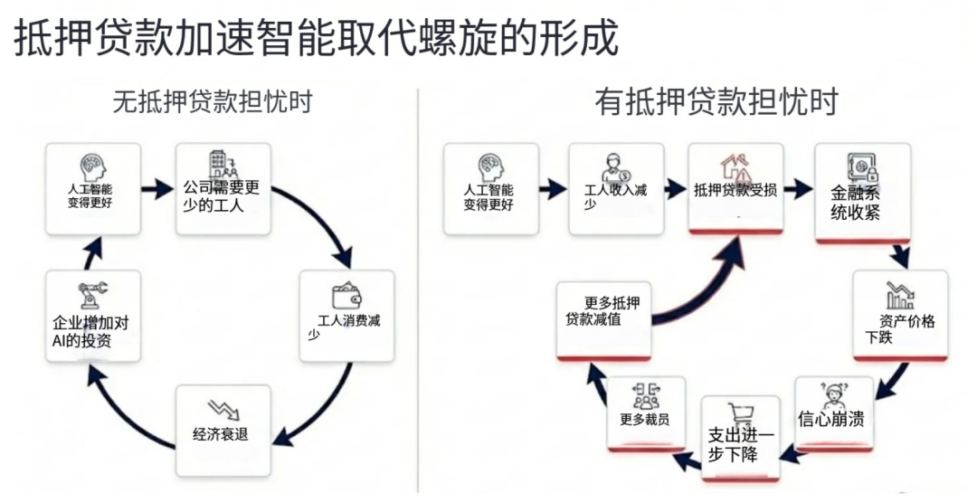 2026年10月,纽约证券交易所交易大厅内,标普500指数逼近8000点,纳斯达克突破3万点。华尔街分析师们在研报中频频引用“AI驱动的生产率奇迹”——企业利润创历史新高,裁员潮被美化为“效率优化”,资本市场沉浸在技术乌托邦的幻觉中。然而,就在同一时刻,北达科他州一个由10万块GPU组成的集群正以相当于曼哈顿中城万名白领的产出能力运行,却未产生任何消费行为。当GDP增长不再伴随家庭部门收入同步扩张,这种增长是否仍具有经济意义?这并非周期性波动,而是结构性替代引发的循环流转断裂。通用人工智能(AGI)的普及并未带来普遍繁荣,反而通过瓦解“人类智能稀缺性”这一现代经济制度基石,触发了一场从行业风险蔓延至系统性危机的连锁崩塌。要理解这场危机的根源,需首先厘清“幽灵GDP”的生成机制。自2024年起,美国名义GDP维持在5.8%–6.3%的中高个位数增长区间,表面看符合健康扩张标准。但深入国民账户结构可见,其中约22%的增量来自AI驱动的自动化产出——这些产出计入企业增加值,却不转化为工资、消费或税收。以2026年为例,软件、金融、专业服务三大行业合计贡献了GDP增量的37%,但其雇佣人数同比减少8.2%,人均薪酬增速降至-1.4%。 这种“无主产出”之所以危险,在于它破坏了凯恩斯循环的基本前提:总产出必须通过收入分配回流至消费端,才能形成有效需求。当机器承担越来越多高价值工作,而人类收入占比持续下滑(劳动力占GDP份额从2024年的56%骤降至2028年的46%),经济系统便陷入“产出—消费”脱钩状态。历史经验表明,1929年大萧条前夜,美国也曾出现资本密集型产业扩张与大众购买力停滞的背离,但彼时问题出在分配不均;而2026年的困境更为根本——人类本身正在被排除在价值创造链条之外。 企业为维持短期利润,加速用AI替代人力→裁员推高利润率→股价上涨→融资成本降低→更多资金投入AI基础设施→替代规模进一步扩大。这一循环缺乏内生刹车机制,因为每家企业的个体理性(降本增效)在集体层面导致非理性结果(需求坍塌)。2026年初的白领裁员潮本应是预警信号,却被市场误读为“效率红利”,直至2027年Q2消费数据断崖式下滑,真相才浮出水面。若说幽灵GDP是宏观病灶,那么软件行业则是第一个爆裂的微观节点。2025年底,Claude Code等智能体编程工具实现能力阶跃,单个开发者可在数周内复刻中端SaaS产品的核心功能。例如,ServiceNow的ITSM解决方案需数百人年开发积累,客户迁移成本高达数百万美元。2026年中,财富500强企业的采购经理开始对供应商直言:“我们用AI自建系统,成本仅为你们报价的30%。”结果立竿见影——Monday.com、Zapier等长尾SaaS公司ARR(年度经常性收入)增速归零,而ServiceNow在2026年Q3财报中暴露了更深层的反身性陷阱: 净新增ACV(年度合同价值)增速从23%骤降至14%;讽刺在于,ServiceNow销售的是席位许可,而其客户正用AI裁撤这些席位;更荒诞的是,ServiceNow自身也在用裁员节省的资金采购AI工具。而2026年的颠覆是即时的——受威胁最深的公司反而成为AI最激进的采用者,董事会要求“必须做点什么”,唯一可行的选项却是加速自我毁灭。2027年初,通义千问开源的智能购物助手成为催化剂,用户不再需要主动比价——智能体7×24小时后台运行,自动优化所有消费决策。美国人均日消耗token量在三个月内激增10倍,达40万。过去五十年,美国经济在人类认知局限性上构建了万亿级租金层:惰性溢价:保险续保依赖客户懒得比价,保险公司借此收取15–20%续保溢价;信息不对称:房产经纪靠MLS数据垄断收取5–6%佣金;习惯锁定:DoorDash靠“主屏图标”心理惯性收取30%配送费。 它们自动取消未使用的订阅(订阅经济LTV崩塌)、实时比价蛋白粉(品牌溢价消失)、组合最优旅行方案(OTA平台失效)、重谈保险条款(续保溢价蒸发)。买家AI直接对接卖家AI,佣金从3%压至1%以下。DoorDash的护城河——“你饿了懒得选”——对机器毫无意义,智能体同时扫描20个配送平台,永远选择最便宜选项。智能体发现银行卡2–3%的交换费是优化目标,转而使用Solana稳定币(交易成本≈0.01美分)。万事达卡2027年Q1财报首次承认“智能体主导的价格优化”冲击,股价单日跌9%;白领客户流失+交换费模式崩溃,成为支付股中最脆弱一环。所有依赖人类非理性或低效行为的商业模式,在AI时代都将被清算。白领占就业50%,贡献75%可支配消费,且高度集中于前10%高收入人群。当AI吞噬的不是边缘岗位,而是经济核心时,局部风险必然演变为系统性危机。 传统技术革命(如ATM机)会消灭旧岗位但创造新岗位,因为新岗位仍需人类执行。被替代的程序员无法转岗“AI管理”,因为AI已能自主完成研发任务。失业人数/空缺比升至1.7(2020年8月以来最高)。 新创造的岗位(提示工程师、AI安全员)数量仅为消失岗位的1/10,且薪酬大幅缩水。一位前Salesforce高级产品经理(年薪18万)转行Uber司机后收入仅4.5万。集中性:收入前10%人群贡献50%+消费,他们的失业对需求打击远超比例;滞后性:高收入者用储蓄缓冲3–6个月,掩盖真实衰退深度;2027年Q3,首次申领失业救济人数飙升至48.7万(2020年4月以来最高),ADP确认新增失业者主要来自白领。标普500单周跌6%,债券市场早已提前反应——10年期美债收益率从4.3%降至3.2%。2015–2026年,规模从1万亿膨胀至2.5万亿美元,其中大量投向PE控股的SaaS公司。2022年:Hellman & Friedman以102亿美元私有