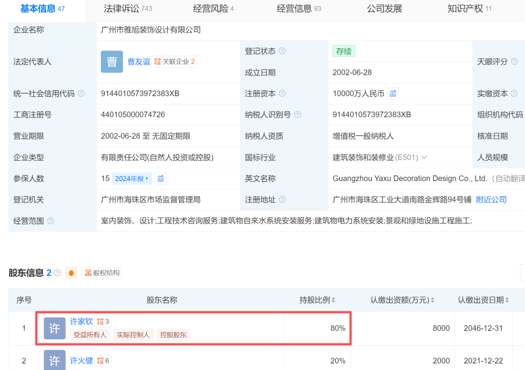不过这起拍卖事件背后,还是有不少蹊跷之处令人费解。公开信息显示,虽然许火健旗下关键公司广州雅旭装饰涉及781件司法案件,可这家公司许火健只是股东之一,持股只有20%,另外80%股份在许家印哥哥许家钦名下,背后真正的实控人,还是许家印和老婆丁玉梅。许火健虽然为人低调,可也不是什么泛泛之辈,出事前他是广州恒大集团董事,而法人正是许家印前妻丁玉梅。光是这层关系,就能看出来许火健早就是恒大核心人物,深受许老板栽培。所以准确来说,许火健就是给许老板顶雷的。