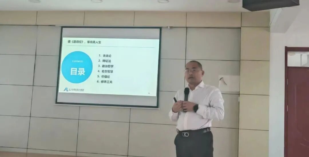 北大纵横副总裁周大强2月24日在山东晨旭新材料公司的开工第一课讲授《道德经_做一个“身”“心”健康的建设者》
