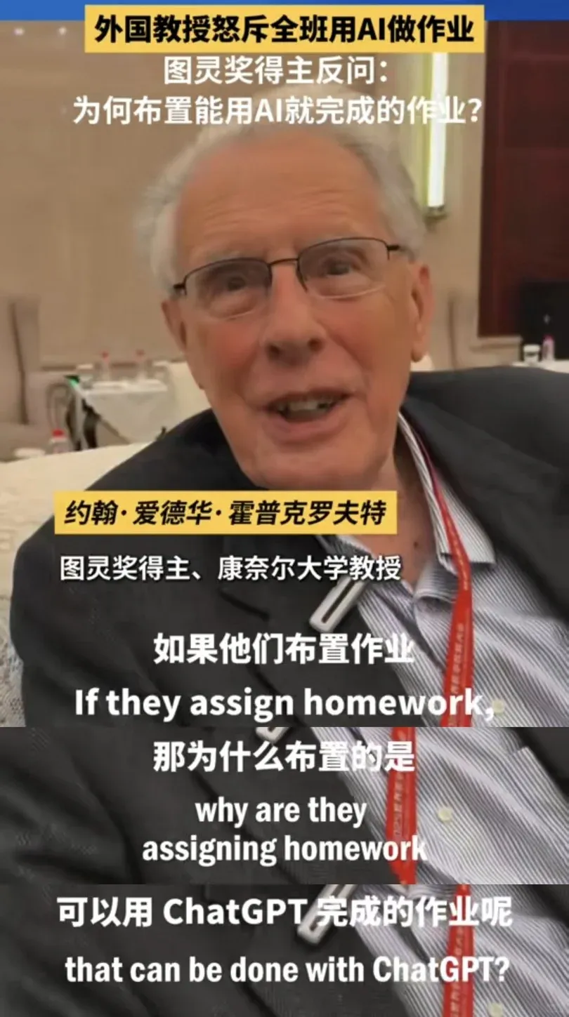 走在前面的人,已经提出了新的思考:“为什么要布置用AI就能完成的作业呢?”