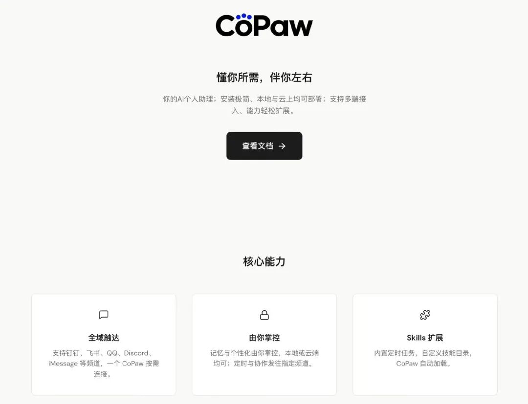 CoPaw 原生支持钉钉、飞书等应用,用户可二次开发 Skills,一键本地或云端部署。Agent 平台开始成为核心产品形态。