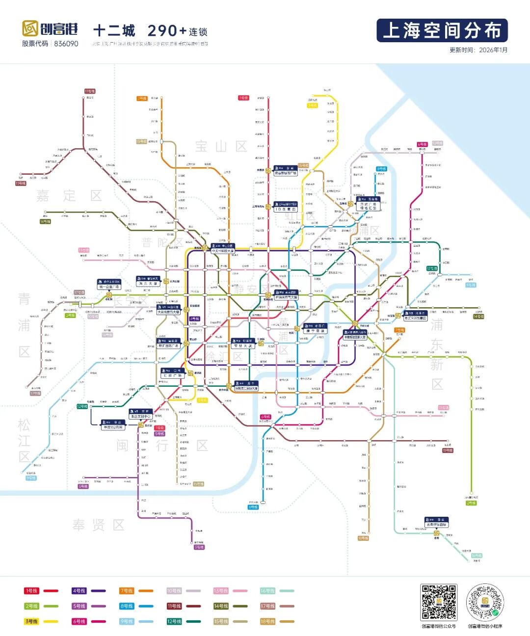 创富港成立于2008年,2016年挂牌新三板(股票代码:836090)。截至2026年1月,全国连锁网点已遍布北京、上海、广州、深圳、杭州、南京、苏州等十二大城市(重庆筹建中),拥有超过290+家空间,累计服务企业超45万家。