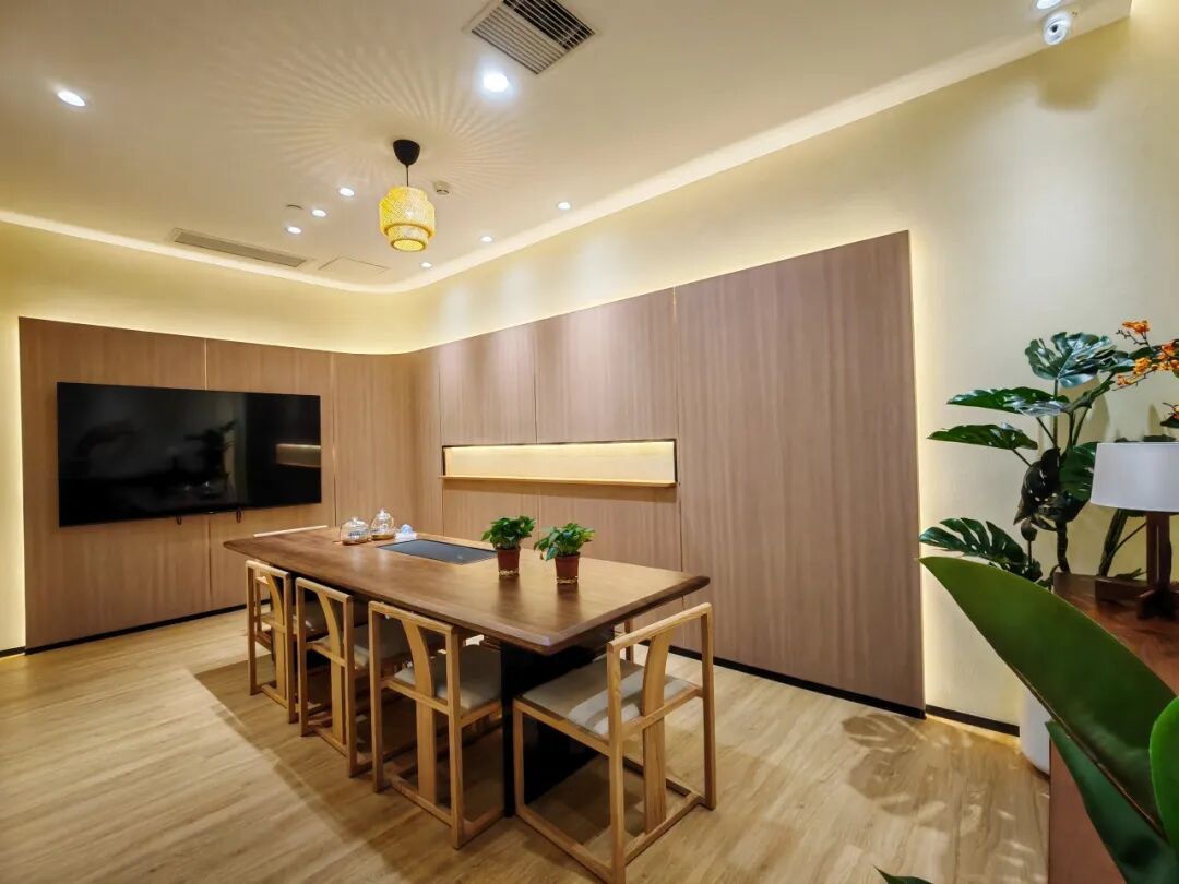 • 休闲茶室+洽谈室:喝茶放松、私密谈业务、对接客户,体面又舒服,还配备高清电视投影,满足各类沟通需求;
