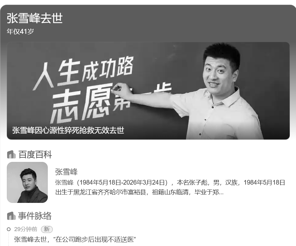 骤闻张雪峰去世了,年仅41岁,比小镇大两岁。