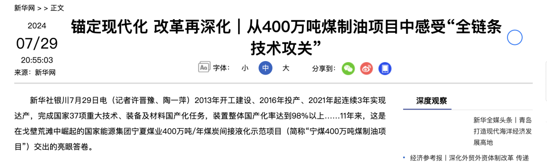 而中国当下所做的是“全都要”——通过技术迭代,降低煤化工的成本,提高产品的价值,最终让中国的煤化工体系不仅可以在和平年代成为印钞机,还可以让它在危机来临的时候成为国家的底牌。