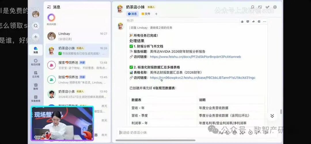 然后在现场演示了让Arkclaw读财报、整合全球宏观数据、生成公众号文章。