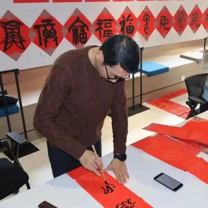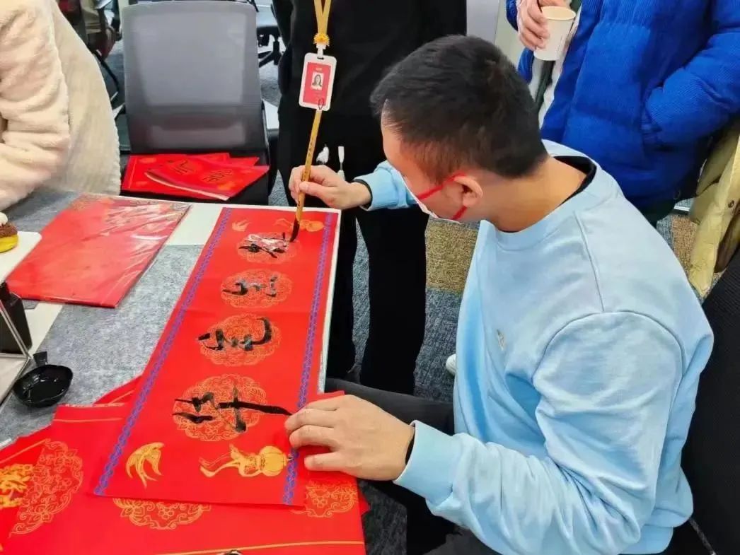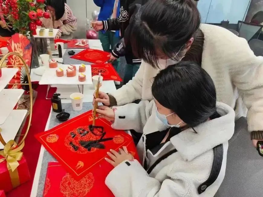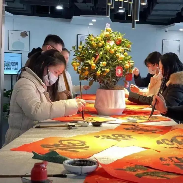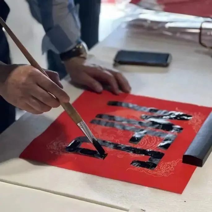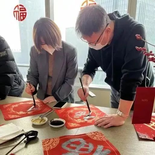MFG特别邀请多地知名书法大家和民俗大师,在现场为企业代表一对一指导,完成专属春联、福字与窗花制作。同时,书法家们现场慷慨挥毫赠字,向到场企业送上祝福。指尖的温度与笔触的灵感,亲临融入的满足与分享的快乐,这个春节顿时被赋予了别样的情感和蕴意。