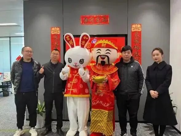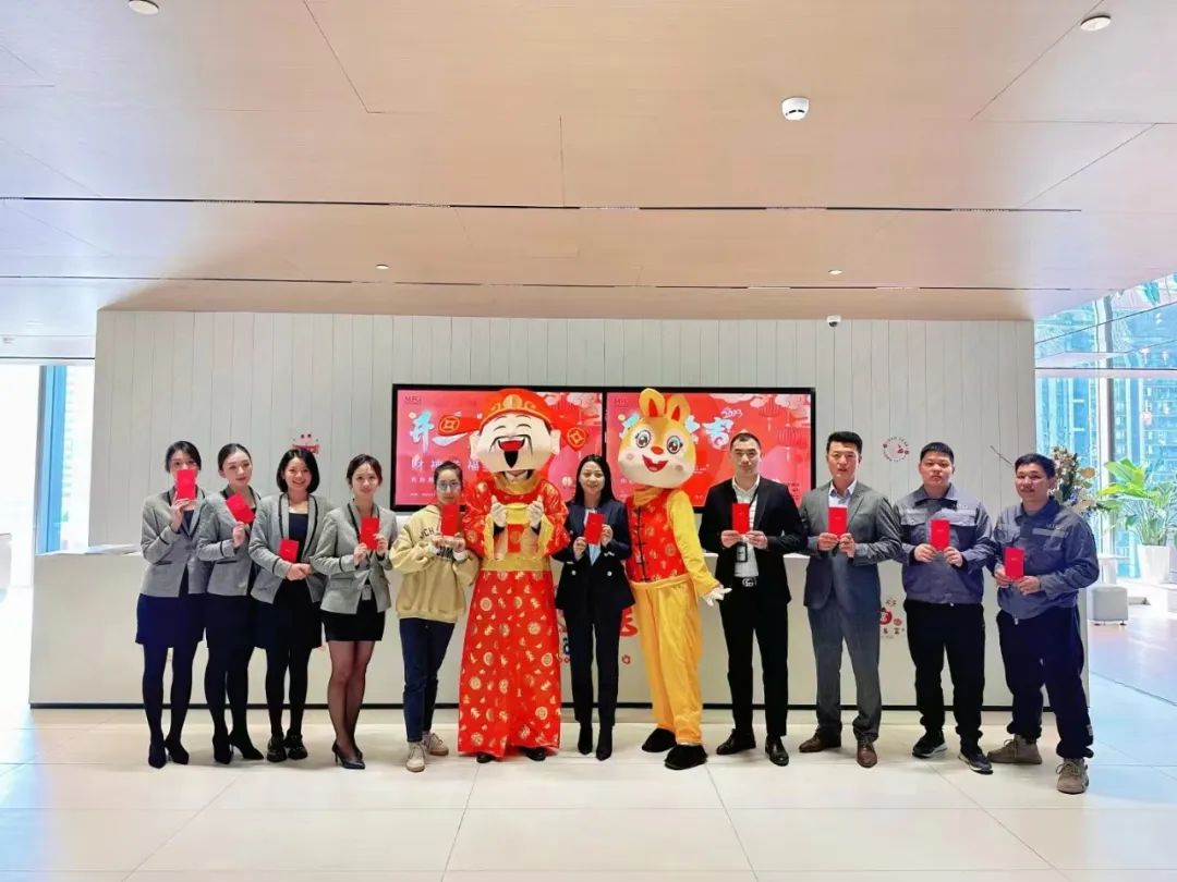 MFG成员变身手捧金元宝的财神,带领金兔、舞狮一一登门拜访各位客户,送上寓意新年好意头的开工利是,更送上财源广进、万事如意的新春祝福。