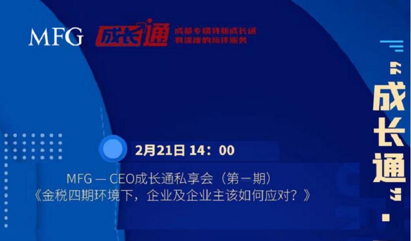 MFG携手成都市科技金融协会打造“CEO成长通私享会”,助力优化企业营商环境,全力为企业做好服务保障,搭建楼宇经济良性生态圈助力企业稳健发展。通过成都专精特新成长通&天府新谷企业服务,为企业主CEO构建成长及发展平台。